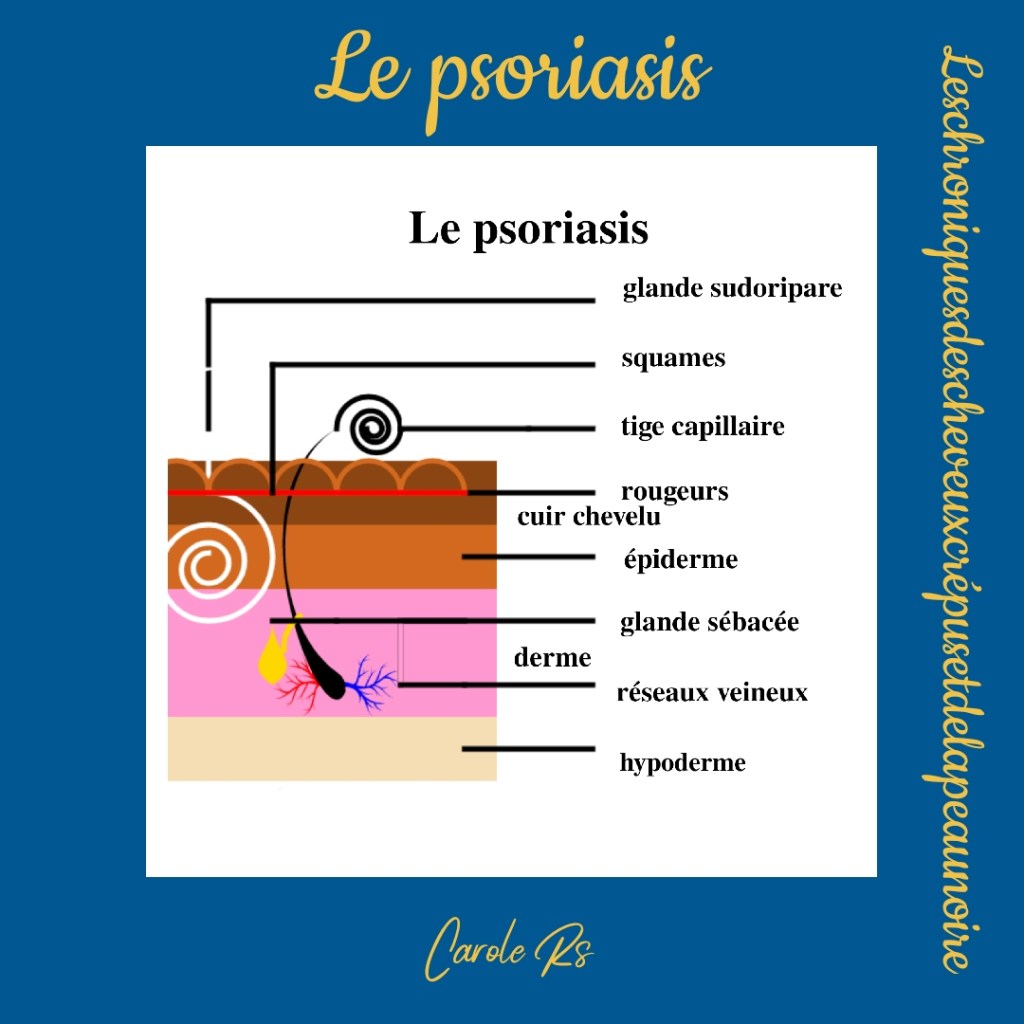 Le psoriasis est une maladie inflammatoire de la peau qui se manifeste par des plaques, des squames blanches épaisses, des rougeurs au niveau du cuir chevelu, des sourcils, pouvant s’étendre jusqu’au front, à la nuque et à l’arrière des oreilles.