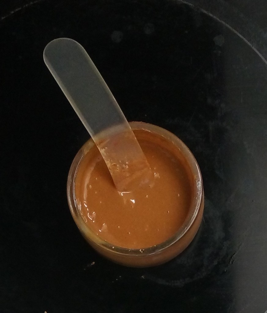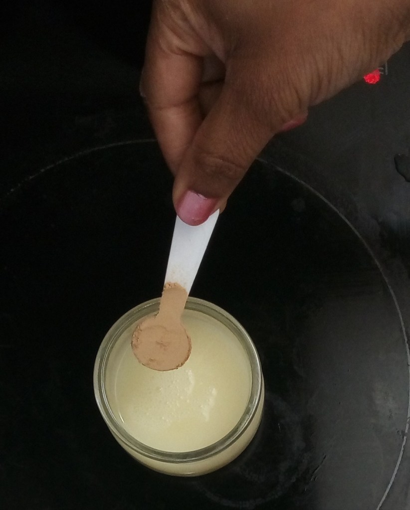 - ajoute la poudre de manjishta, l’argile jaune, utilise une cuillère en bois ou en plastique pour homogénéiser ton masque (l’argile perd toutes ses propriétés en contact des métaux)