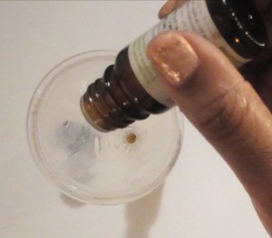 - ajoute les gouttes d’huile essentielle, puis la vitamine E.