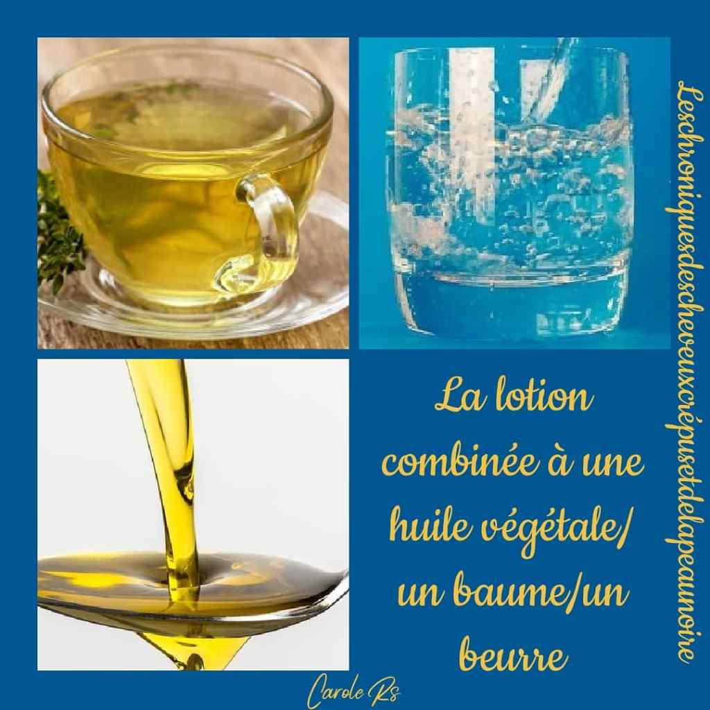 - en appliquant une lotion combinée à une huile végétale ou à un baume ou à un beurre.
